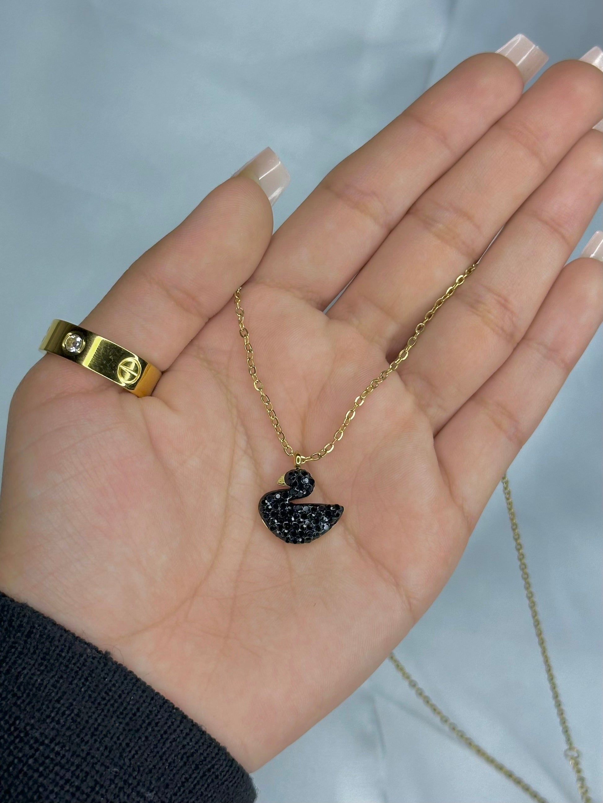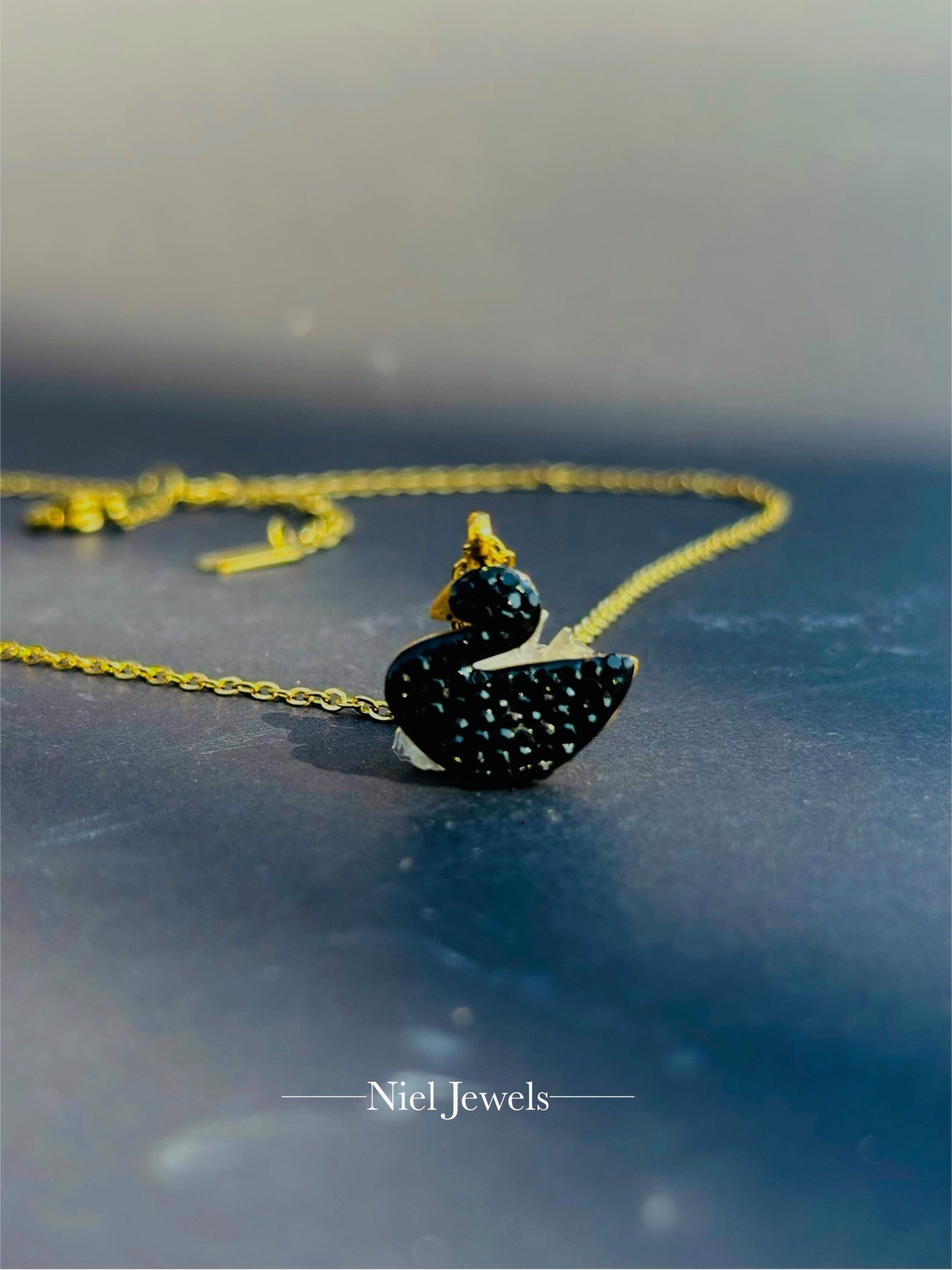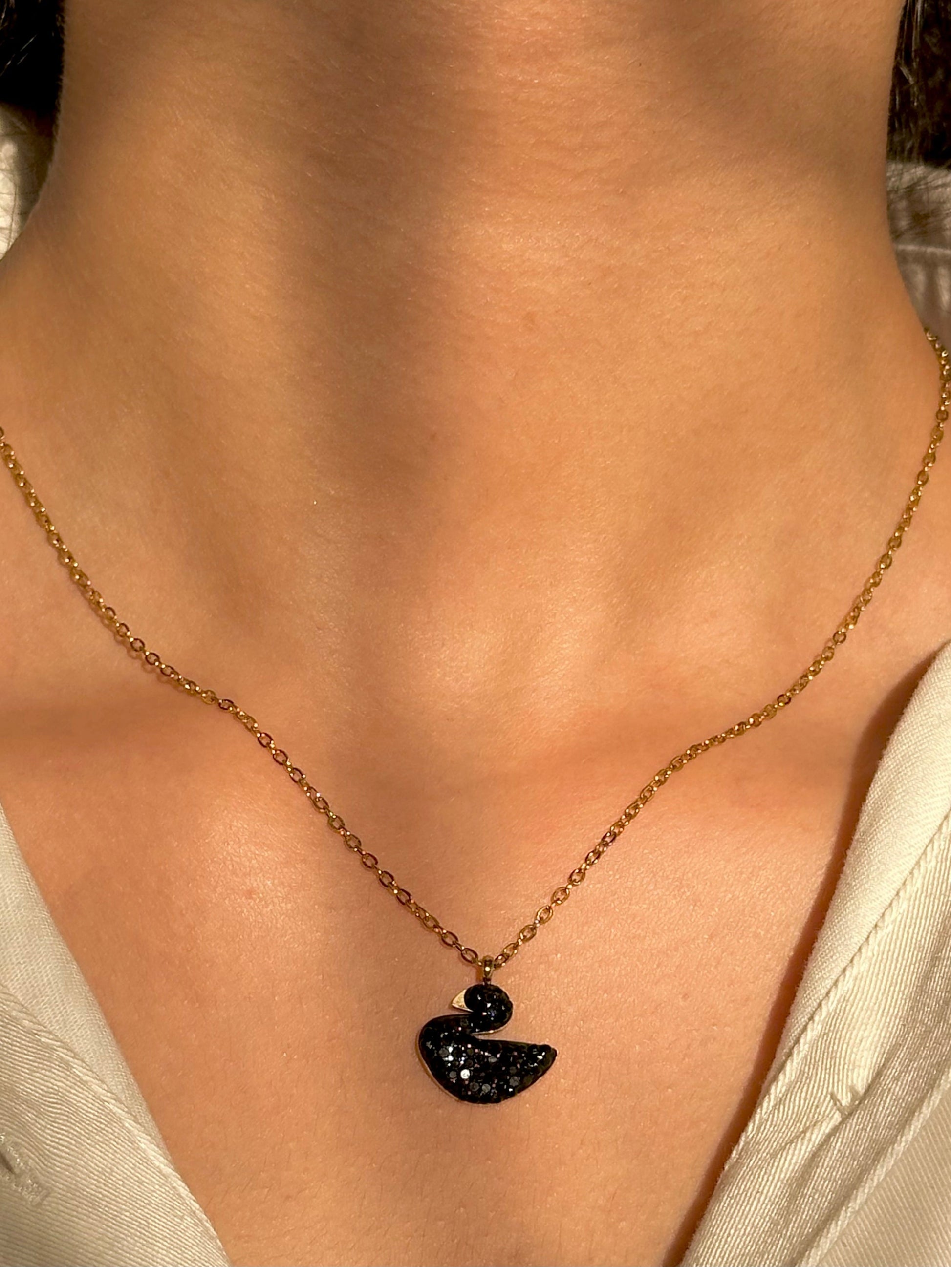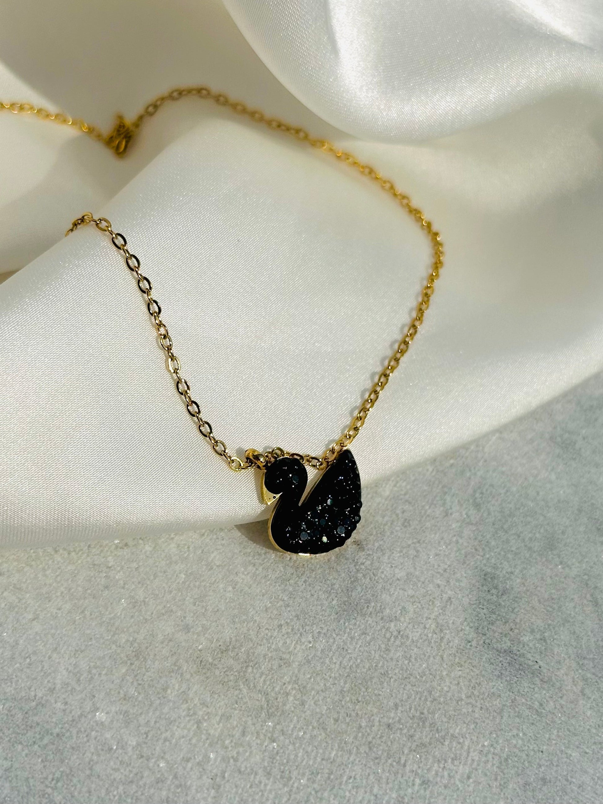 This elegant Iconic Black Swan Necklace comes with a gold toned stainless steel chains, each with a sleek finish and premium quality that is both tarnish-free and waterproof.